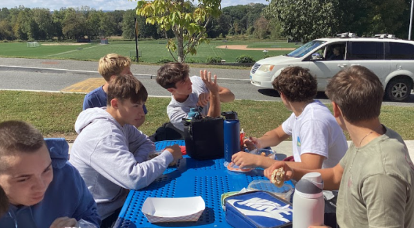 Max Nichols, a junior at Nonnewaug who eats outside, said the bees often like the juice served with lunches.